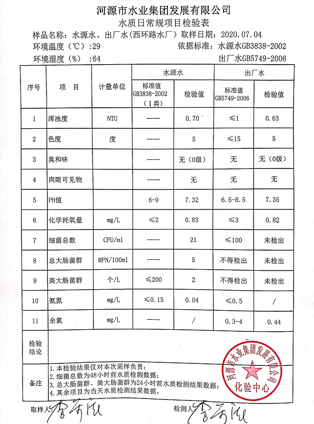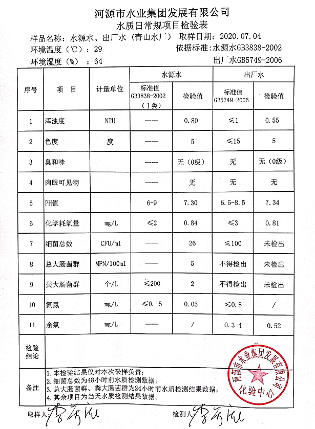 2020年7月4日水質檢驗報告