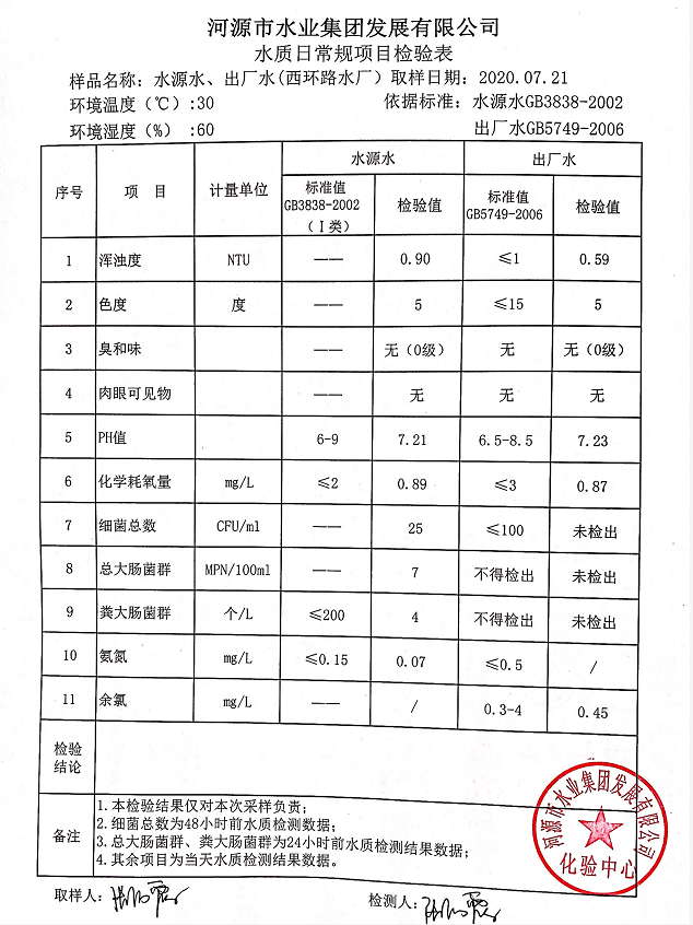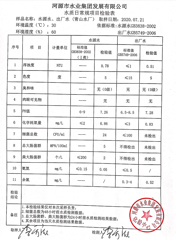 2020年7月21日水質(zhì)檢驗(yàn)報告