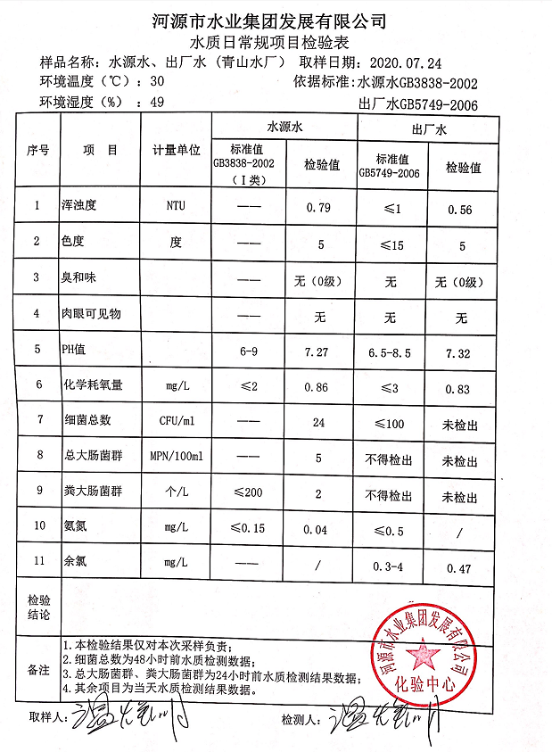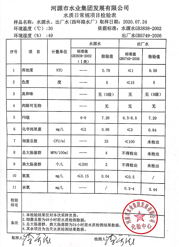 2020年7月24日水質(zhì)檢驗(yàn)報(bào)告