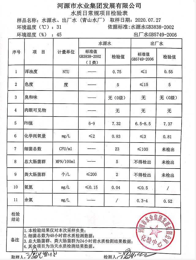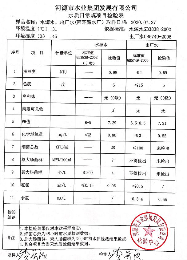 2020年7月27日水質(zhì)檢驗(yàn)報(bào)告
