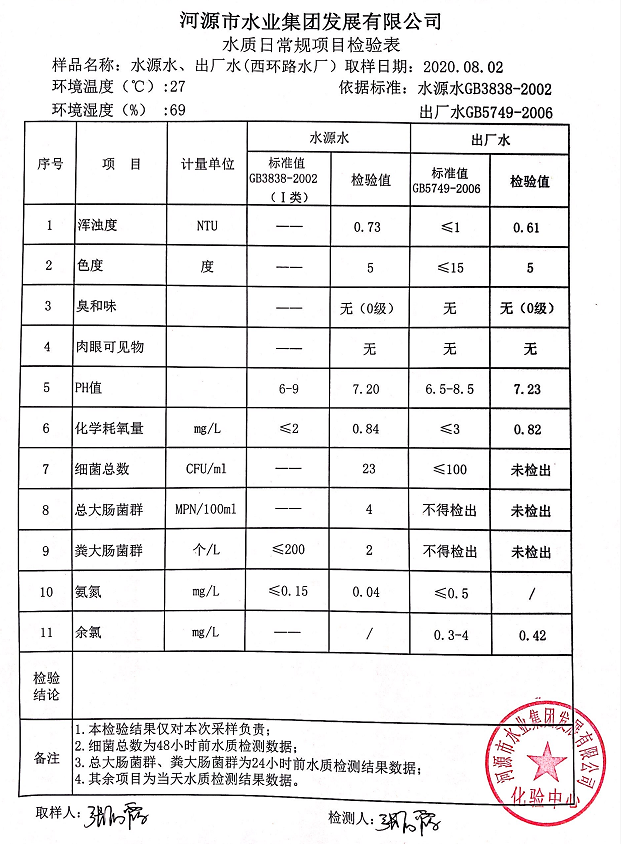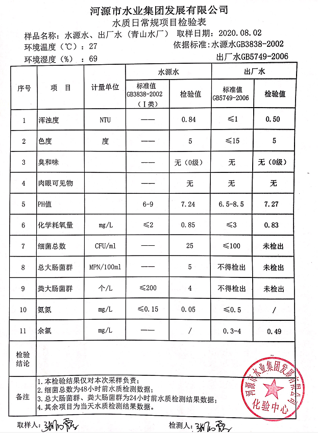 2020年8月2日水質(zhì)檢驗(yàn)報(bào)告