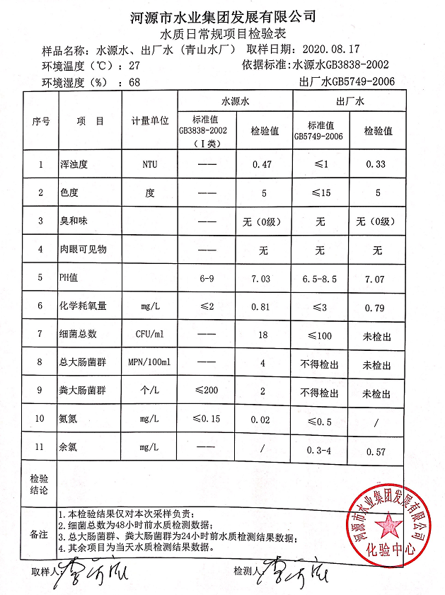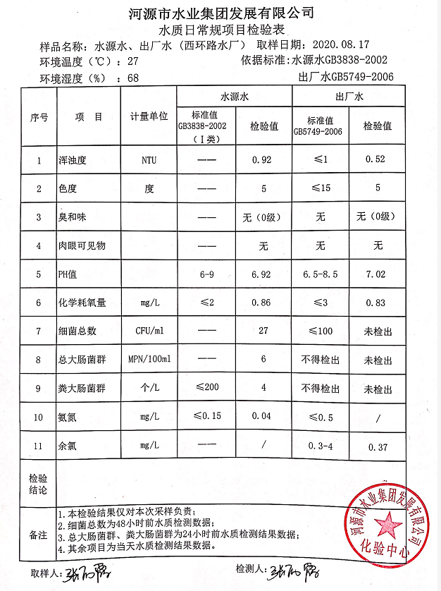 2020年8月17日水質(zhì)檢驗(yàn)報(bào)告