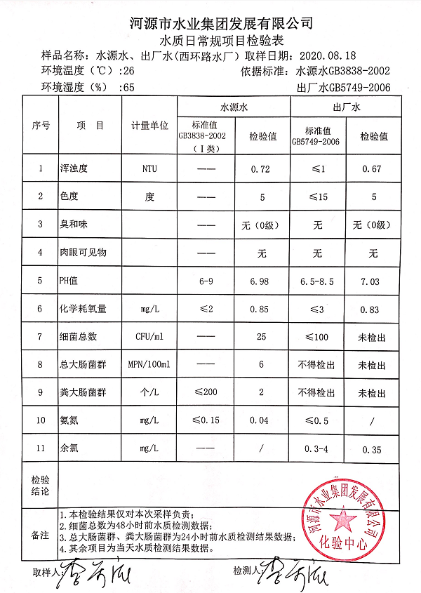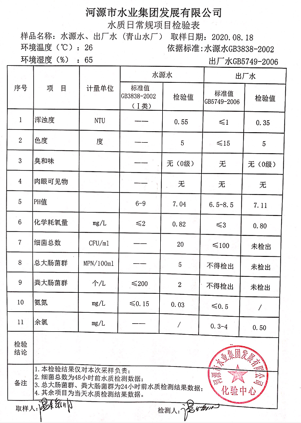 2020年8月18日水質(zhì)檢驗(yàn)報(bào)告