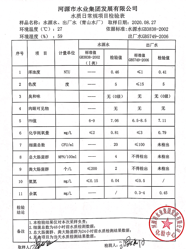 2020年8月27日水質(zhì)檢驗(yàn)報(bào)告