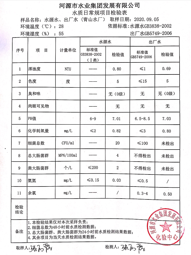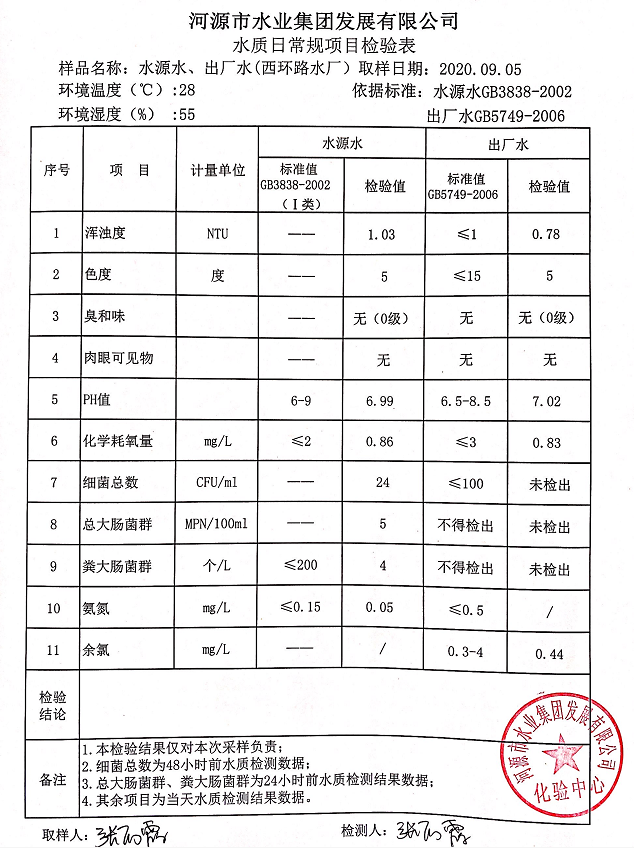 2020年9月5日水質(zhì)檢驗報告