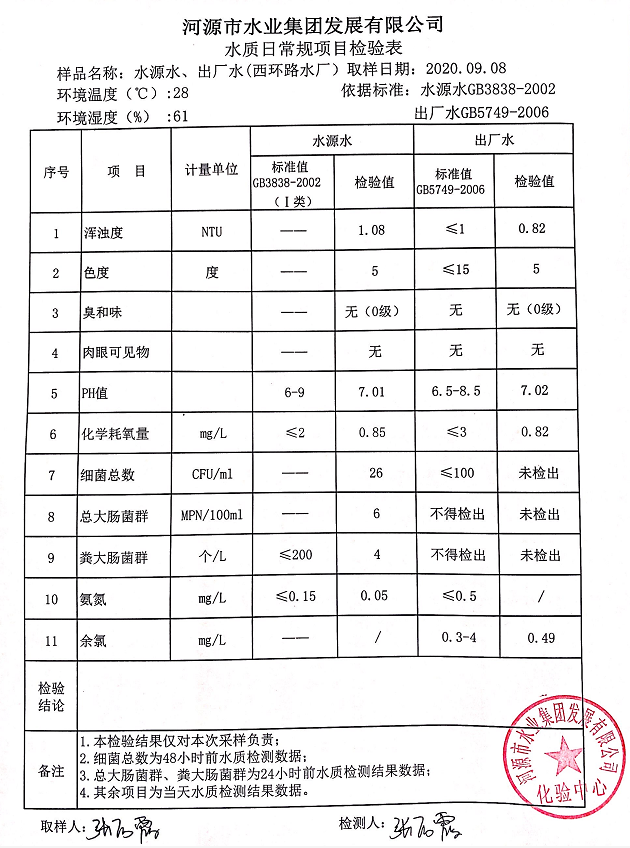 2020年9月8日水質(zhì)檢驗(yàn)報(bào)告