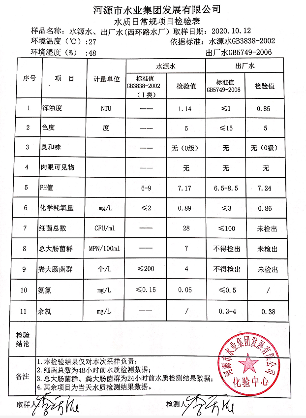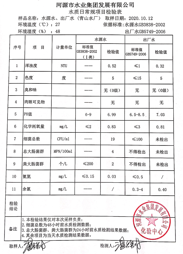 2020年10月12日水質(zhì)檢驗(yàn)報(bào)告