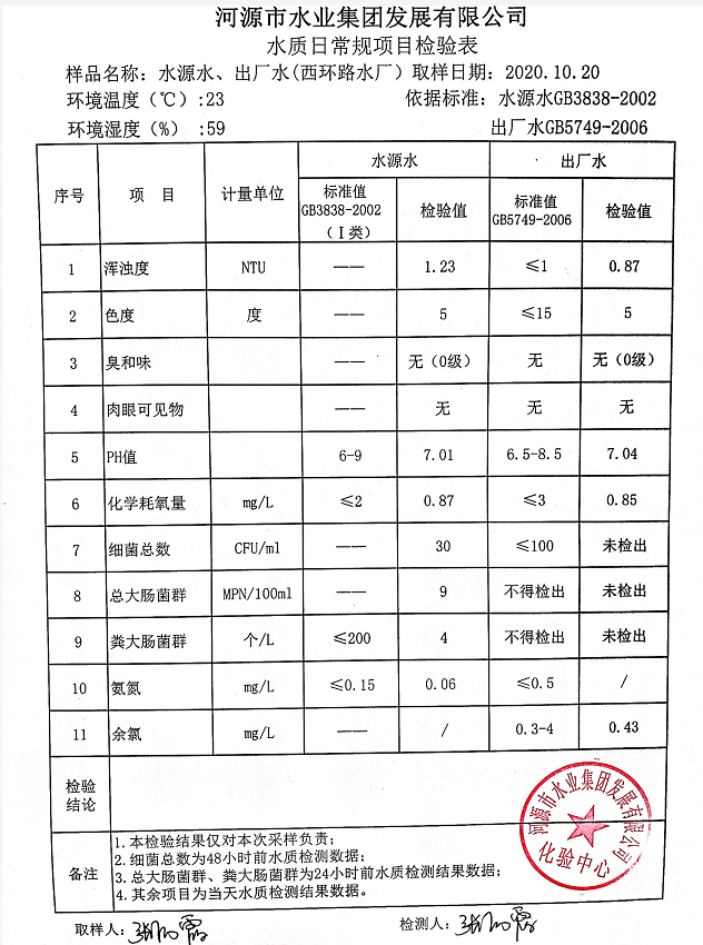 2020年10月20日水質(zhì)檢驗(yàn)報(bào)告