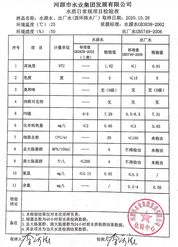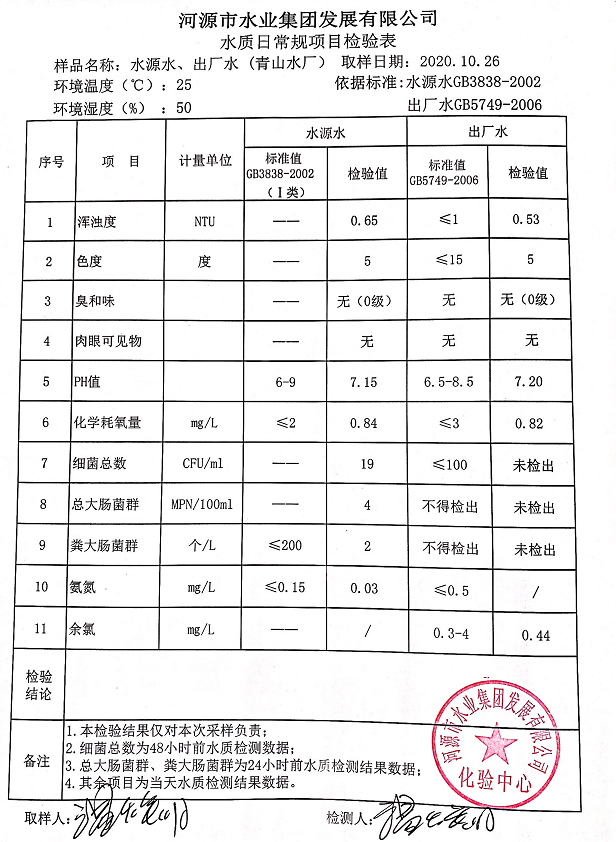 2020年10月26日水質(zhì)檢驗(yàn)報(bào)告
