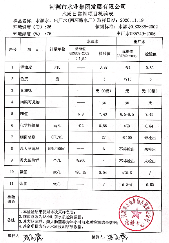 2020年11月19日水質(zhì)檢驗(yàn)報(bào)告