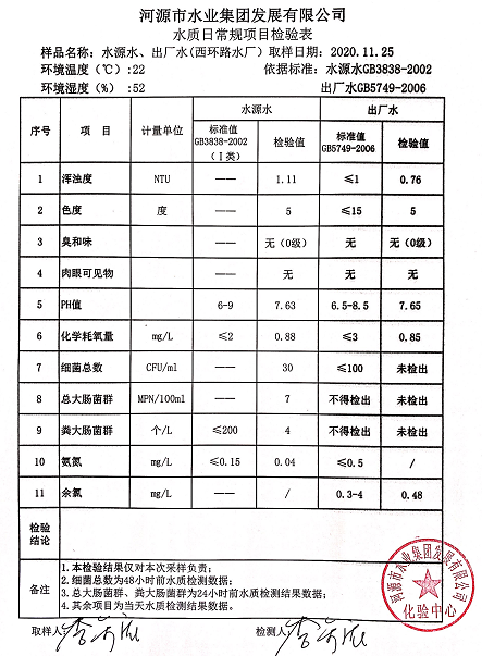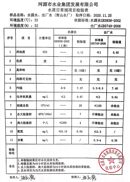 2020年11月25日水質(zhì)檢驗(yàn)報告