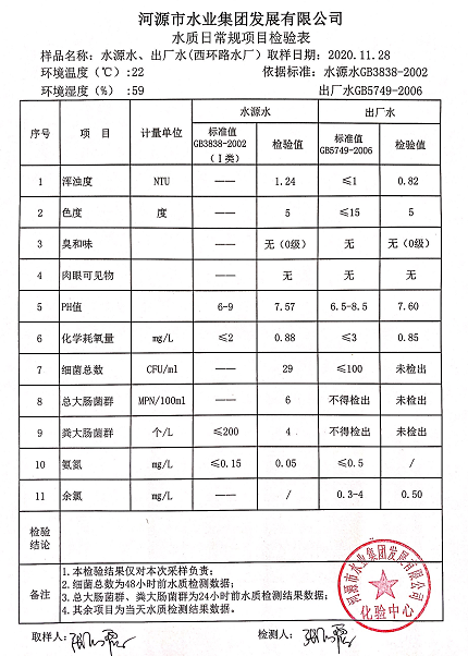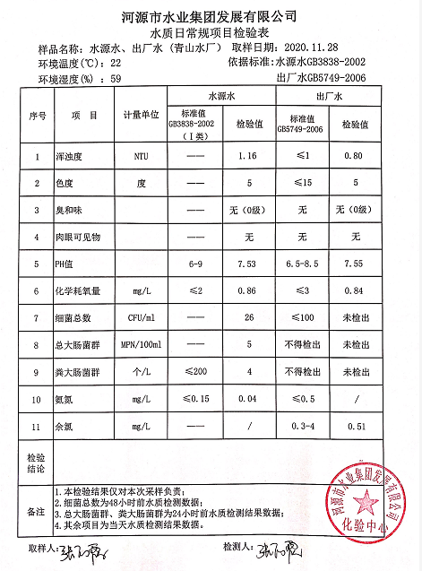 2020年11月28日水質(zhì)檢驗(yàn)報(bào)告