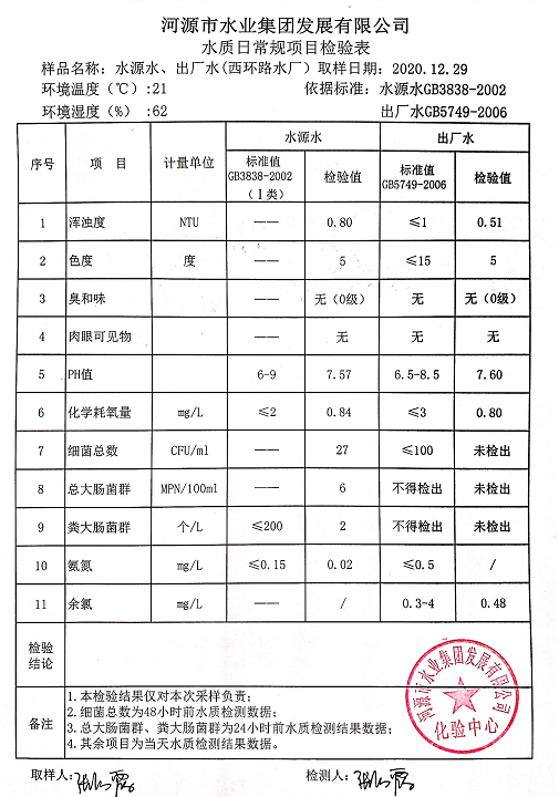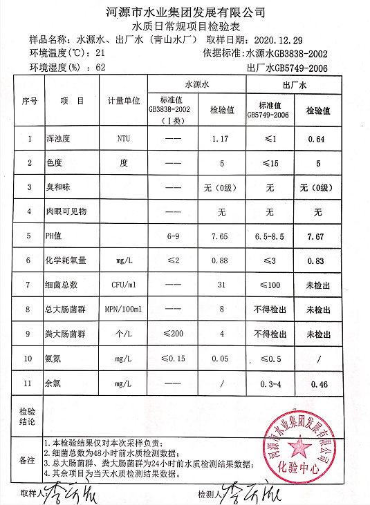 2020年12月29日水質檢驗報告