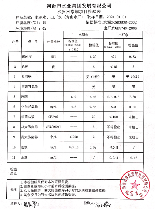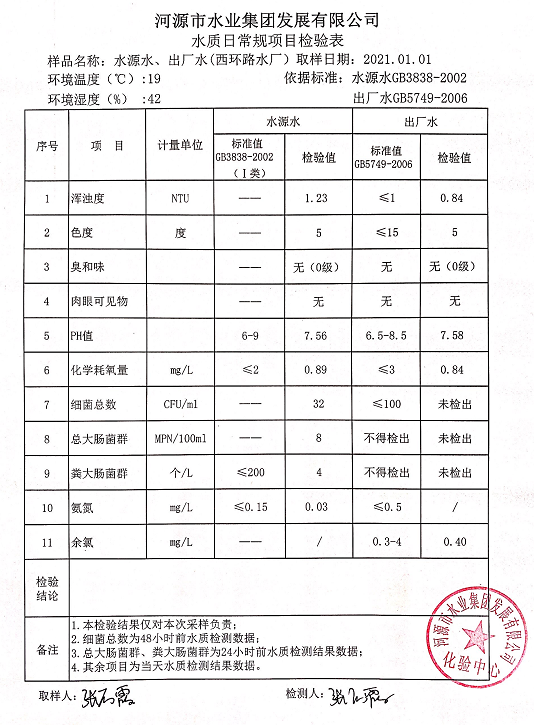 2021年1月1日水質(zhì)檢驗(yàn)報(bào)告