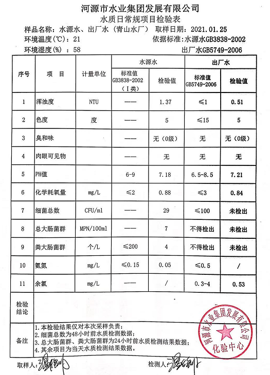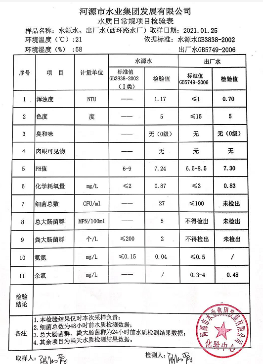 2021年1月25日水質(zhì)檢驗(yàn)報(bào)告