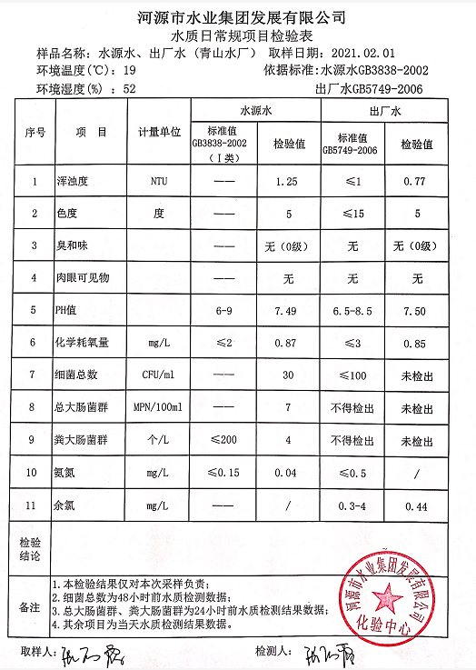 2021年2月1日水質(zhì)檢驗(yàn)報(bào)告