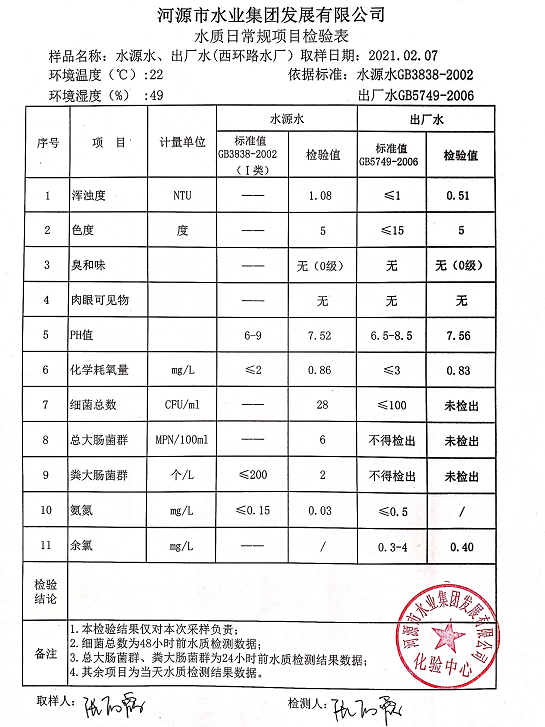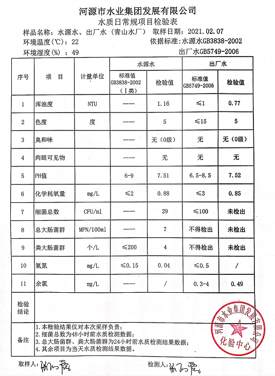 2021年2月7日水質(zhì)檢驗(yàn)報(bào)告