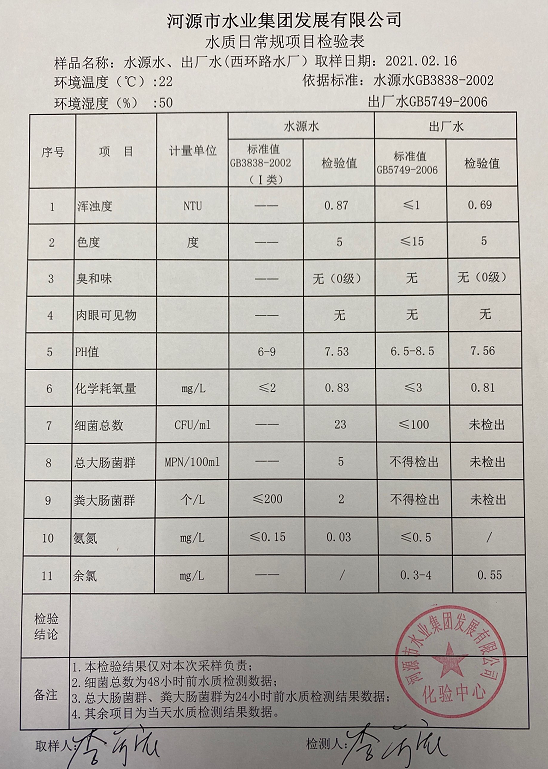 2021年2月16日水質(zhì)檢驗(yàn)報(bào)告