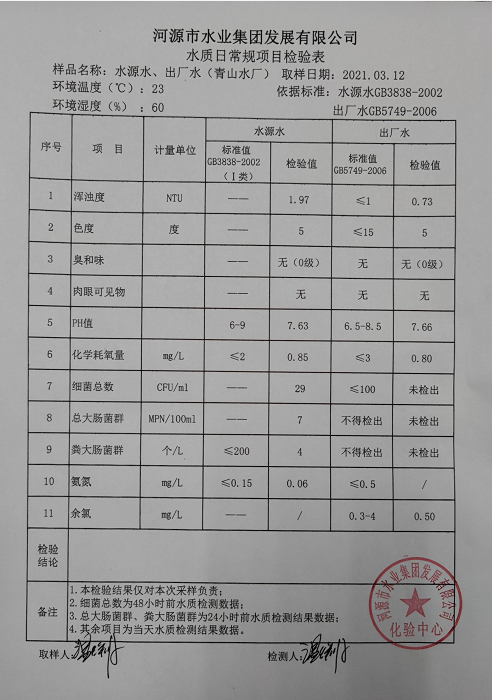 2021年3月12日水質(zhì)檢驗(yàn)報(bào)告