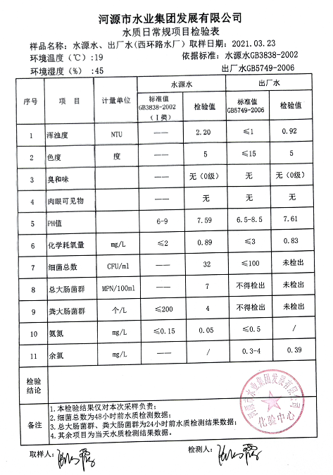 2021年3月23日水質(zhì)檢驗(yàn)報(bào)告