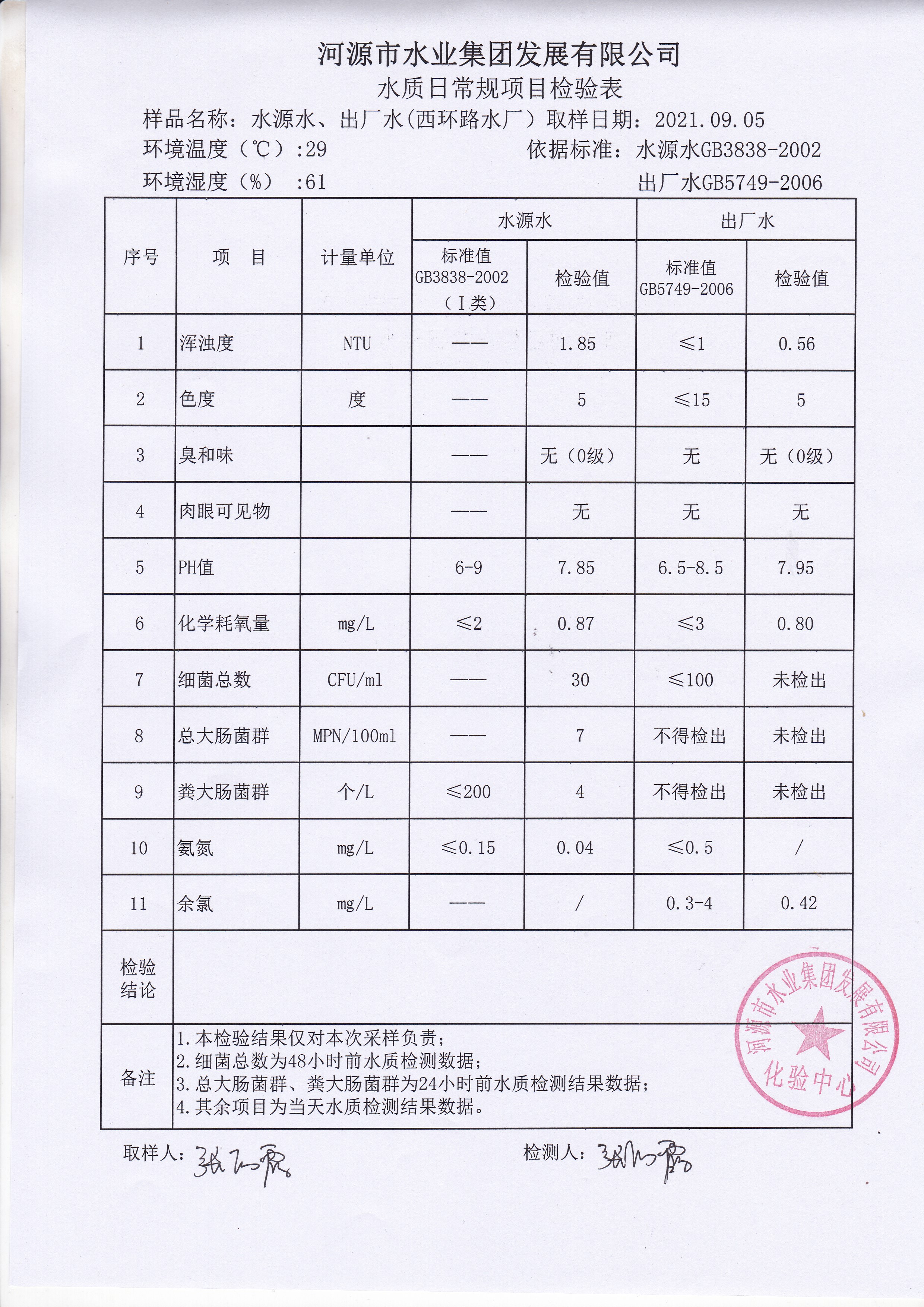 2021年9月5日水質(zhì)檢驗(yàn)報(bào)告 ????