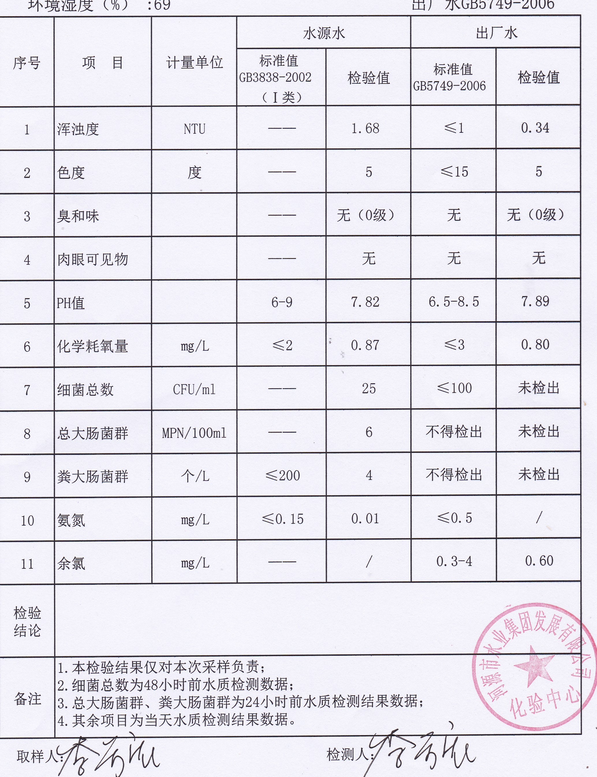 2021年10月12日水質檢驗報告