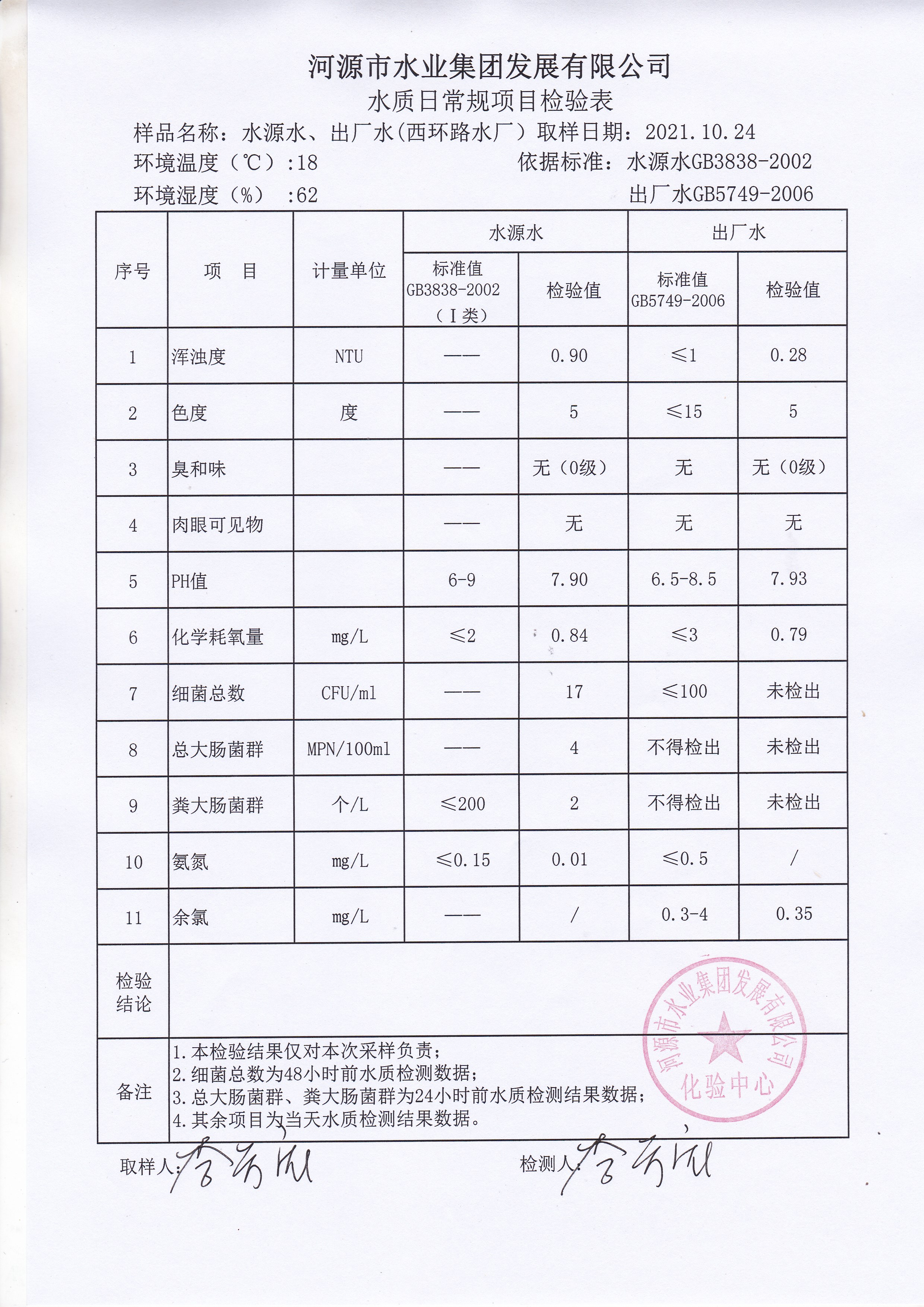 2021年10月24日水質(zhì)檢驗(yàn)報(bào)告
