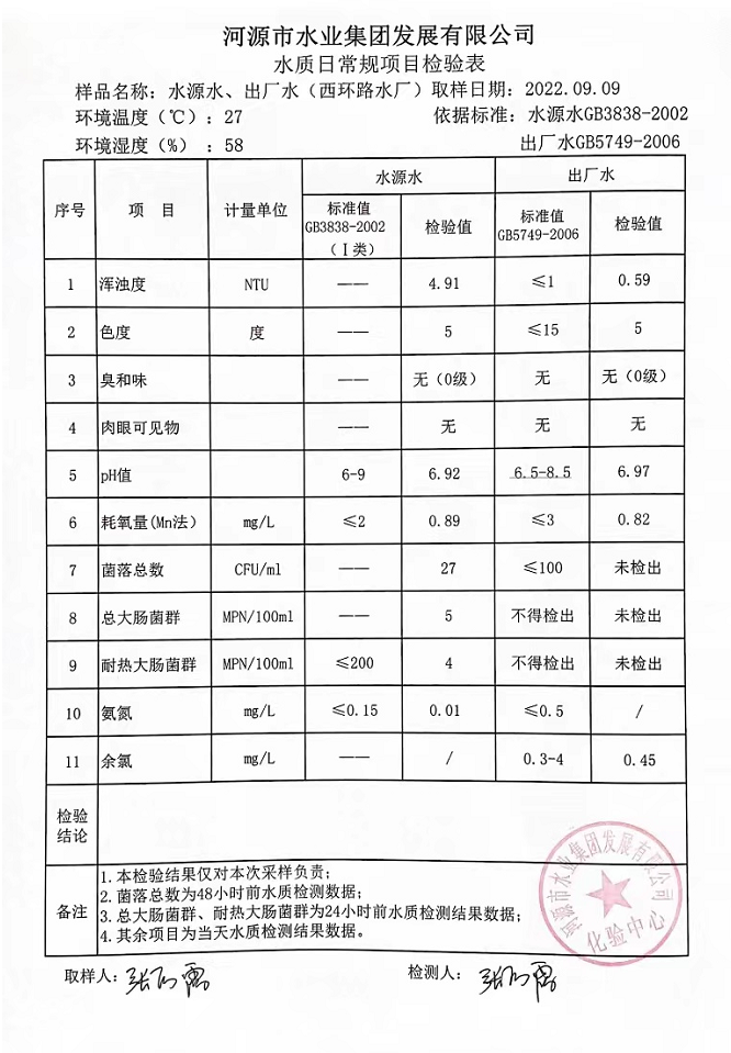 2022年9月9日水質(zhì)檢驗(yàn)報(bào)告