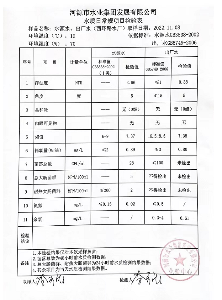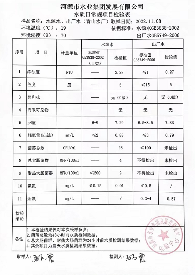 2022年11月8日水質(zhì)檢驗(yàn)報(bào)告