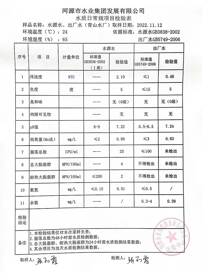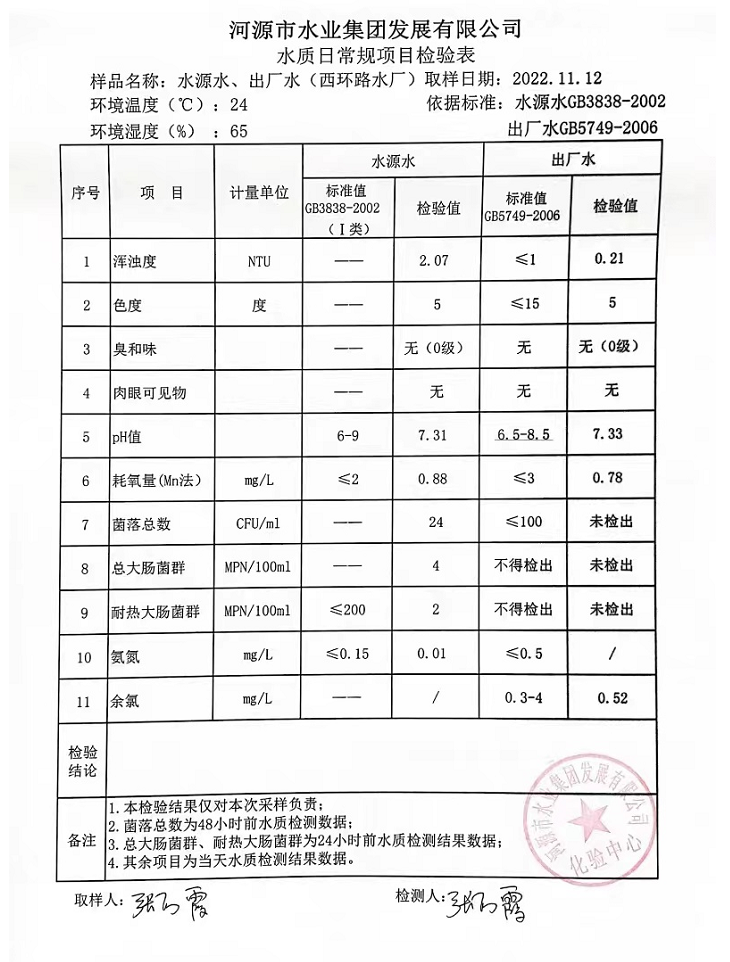 2022年11月12日水質(zhì)檢驗報告