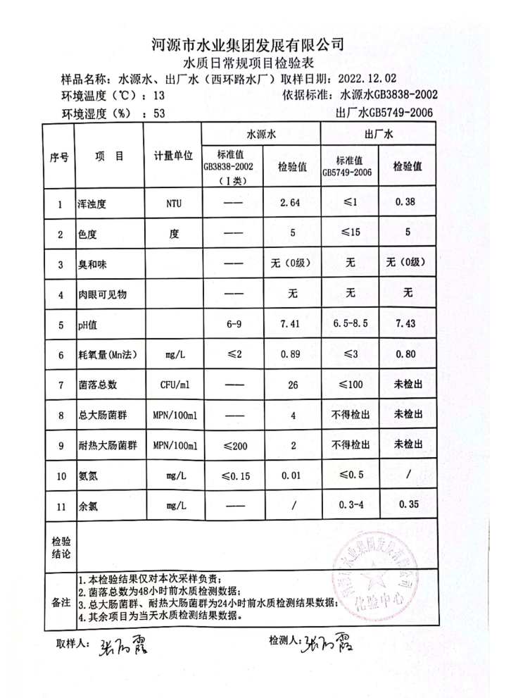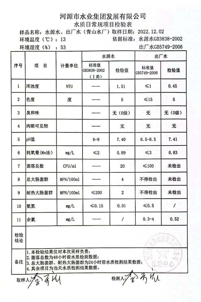 2022年12月2日水質(zhì)檢驗(yàn)報(bào)告