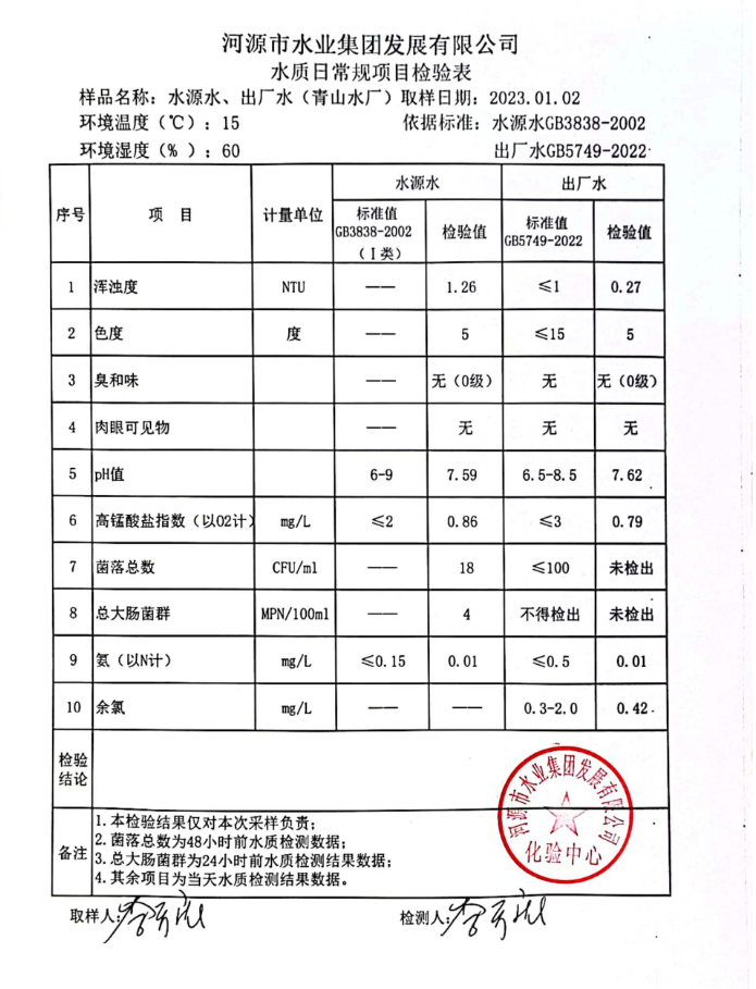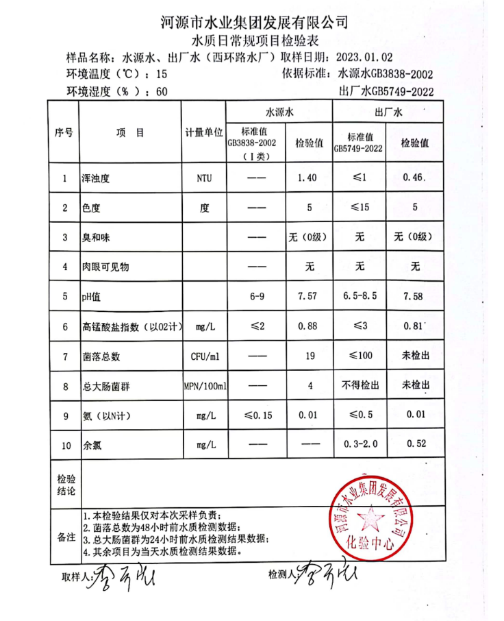 2023年1月2日水質檢驗報告