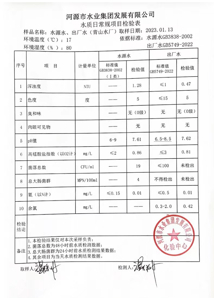 2023年1月13日水質(zhì)檢驗(yàn)報(bào)告
