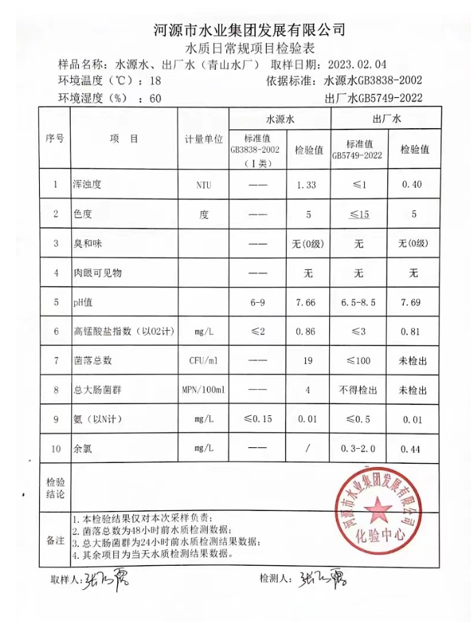 2023年2月4日水質(zhì)檢驗(yàn)報(bào)告