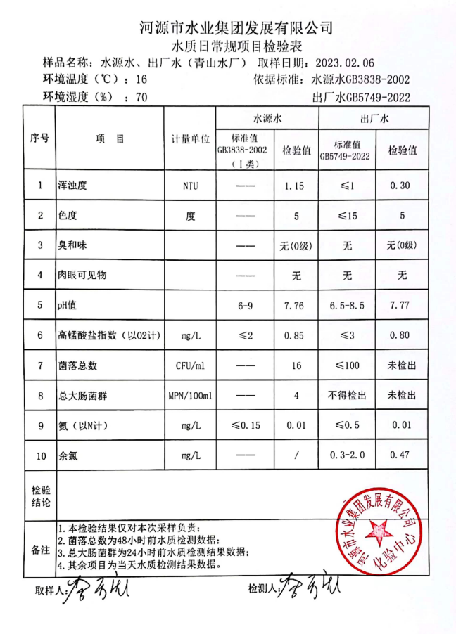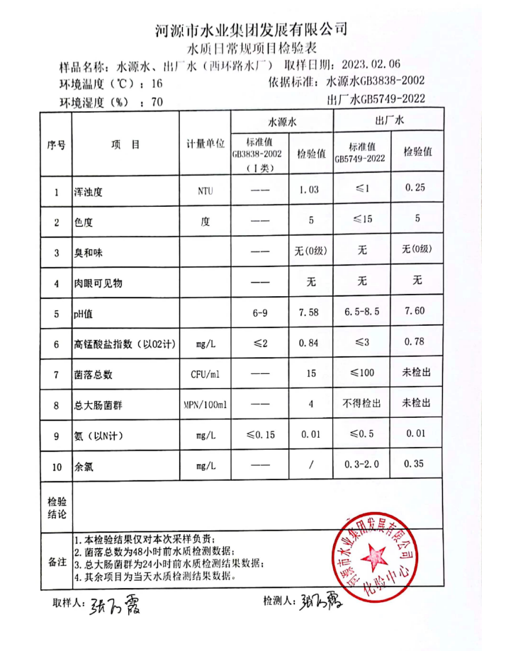 2023年2月6日水質(zhì)檢驗(yàn)報(bào)告