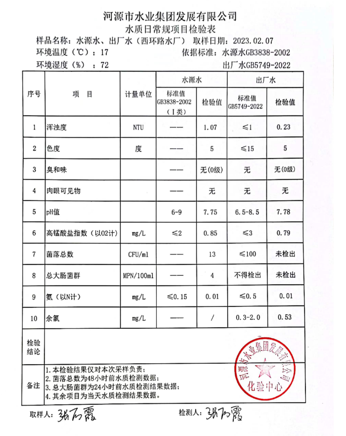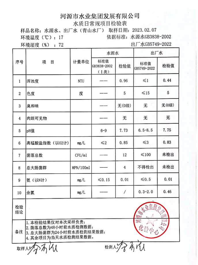 2023年2月7日水質(zhì)檢驗報告