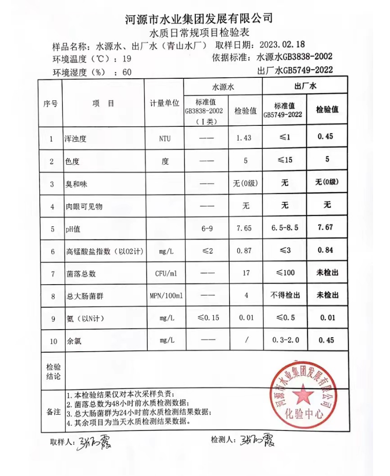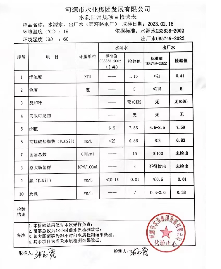 2023年2月18日水質(zhì)檢驗報告