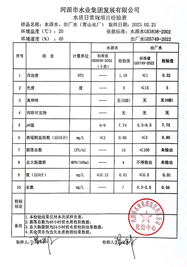 2023年2月21日水質(zhì)檢驗(yàn)報(bào)告