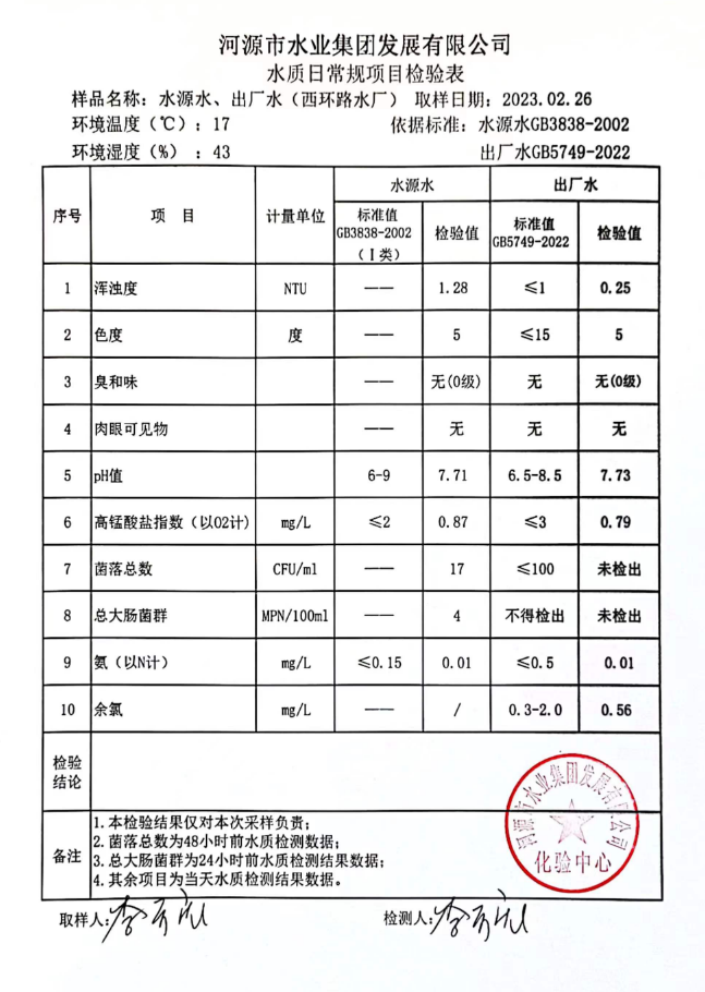 2023年2月26日水質(zhì)檢驗(yàn)報(bào)告