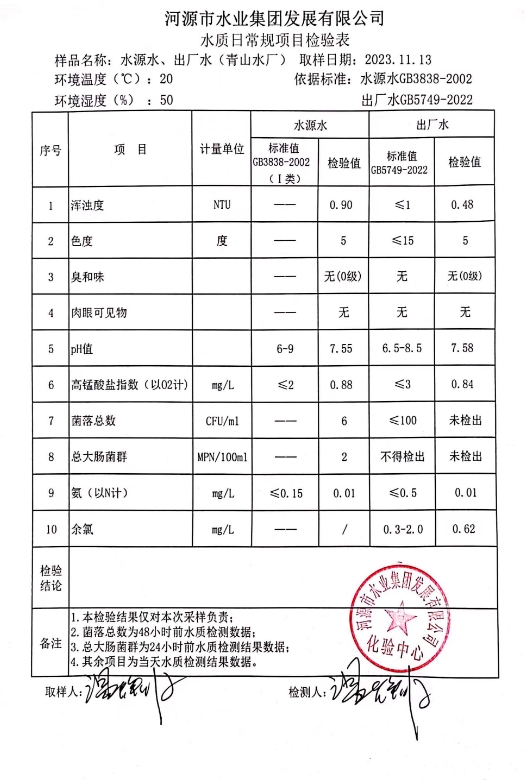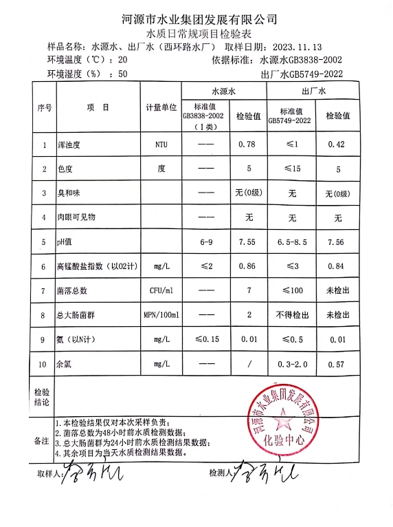 2023年11月13日水質(zhì)檢驗(yàn)報告 ???