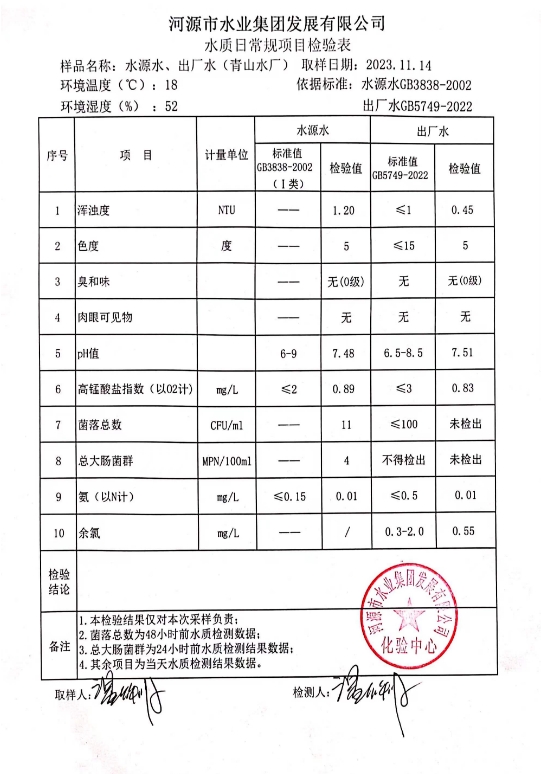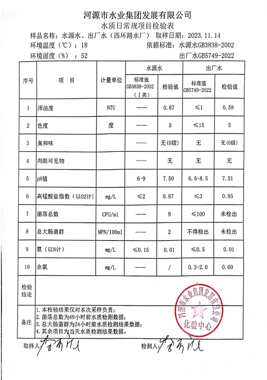 2023年11月14日水質(zhì)檢驗(yàn)報告 ???