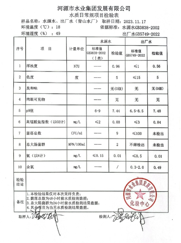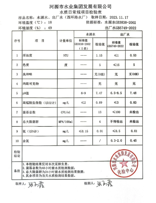 2023年11月17日水質(zhì)檢驗(yàn)報(bào)告 ???