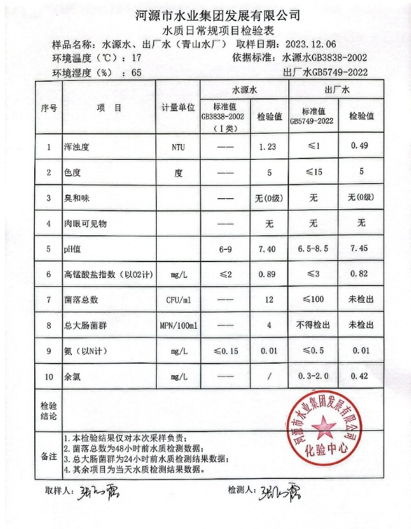2023年12月6日水質(zhì)檢驗(yàn)報(bào)告 ???