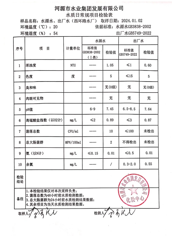 2024年1月2日水質(zhì)檢驗(yàn)報(bào)告 ???