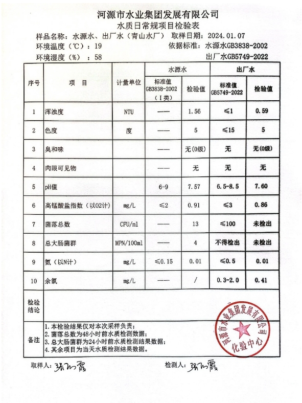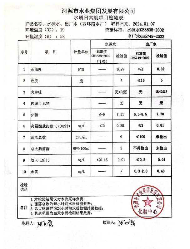 2024年1月7日水質(zhì)檢驗(yàn)報(bào)告