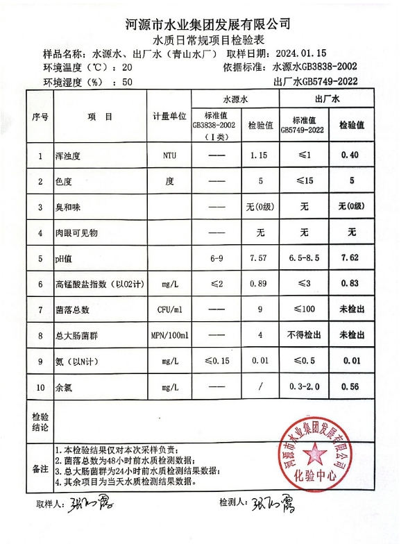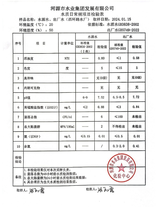 2024年1月15日水質(zhì)檢驗(yàn)報(bào)告 ???