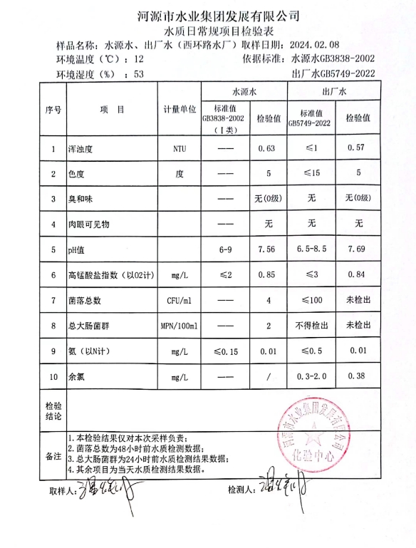 2024年2月8日水質(zhì)檢驗(yàn)報告 ???