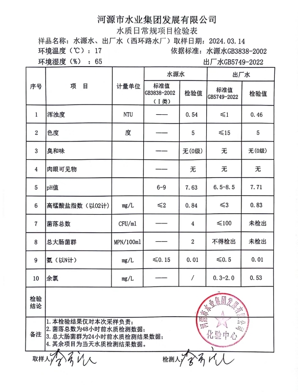2024年3月14日水質(zhì)檢驗(yàn)報(bào)告 ???