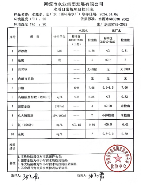 2024年4月4日水質(zhì)檢驗(yàn)報(bào)告
