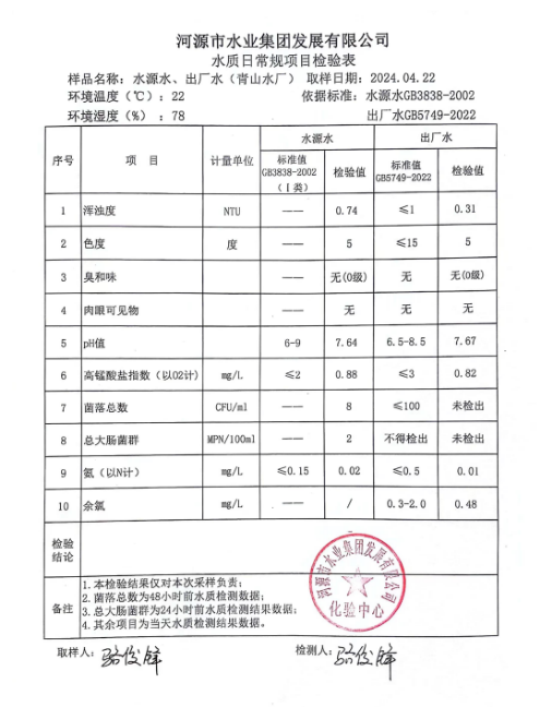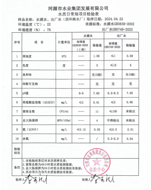 2024年4月22日水質(zhì)檢驗(yàn)報(bào)告 ???